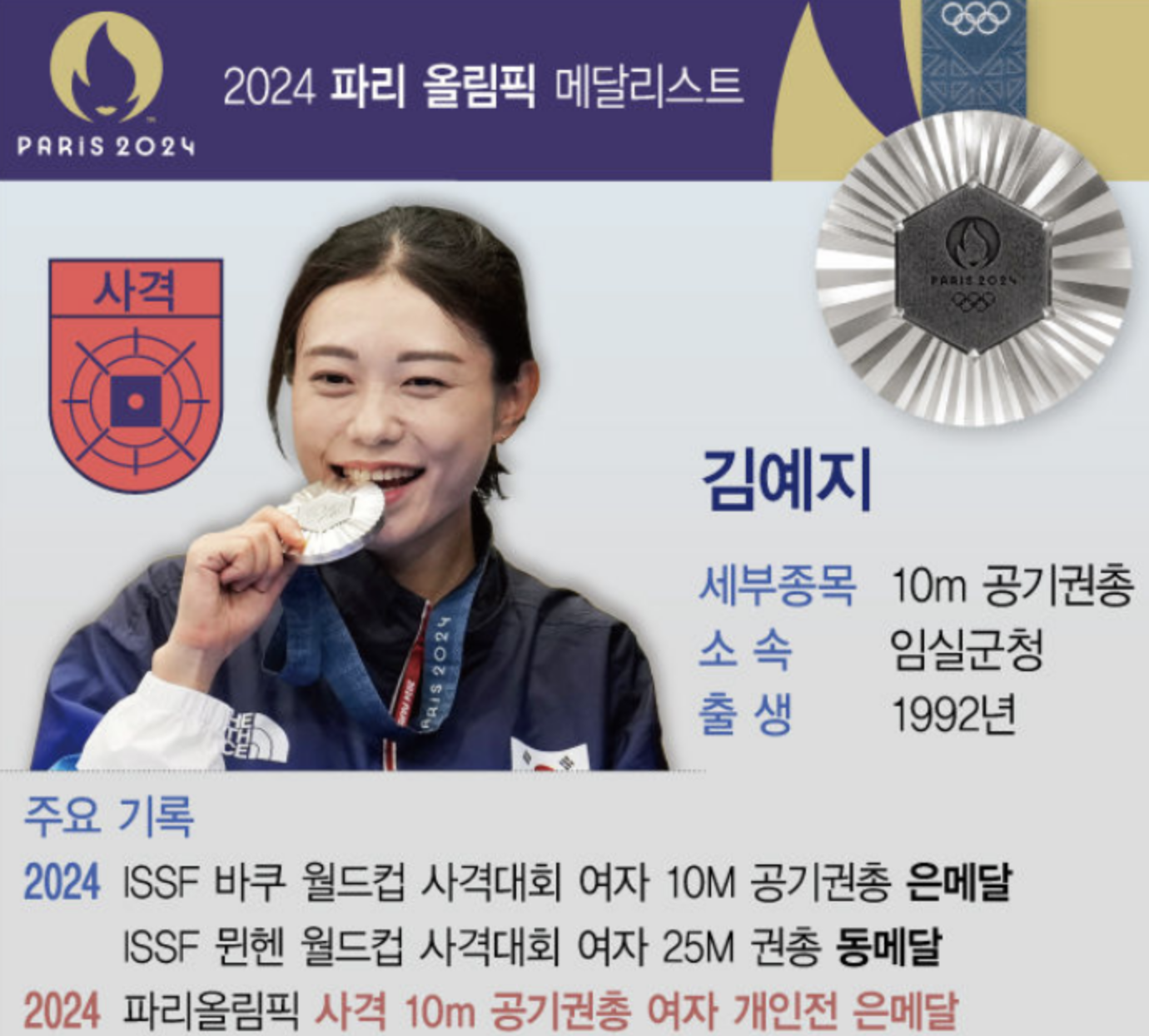이번 파리 올림픽에서 은메달을 차지한 김예지 선수!