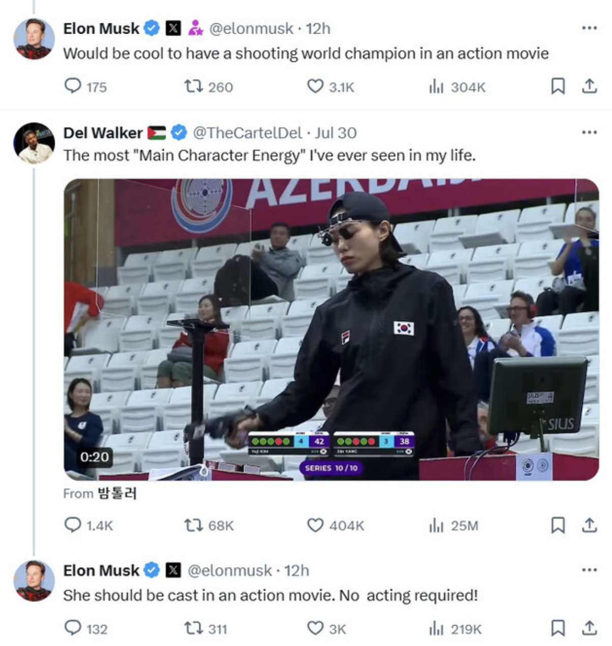 일론 머스크가 직접 sns에서 그녀를 액선 영화에 캐스팅 해야 한다는 글로