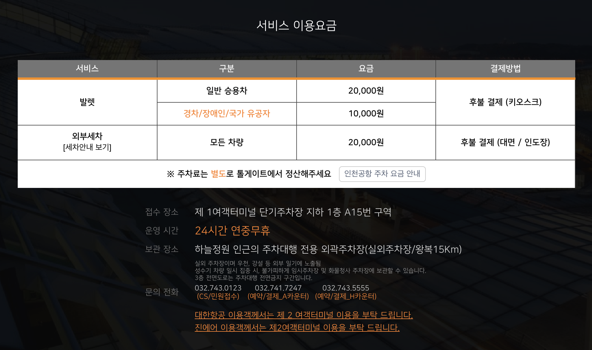 인천공항 주차대행 하이파킹 1터미널 발렛파킹 예약