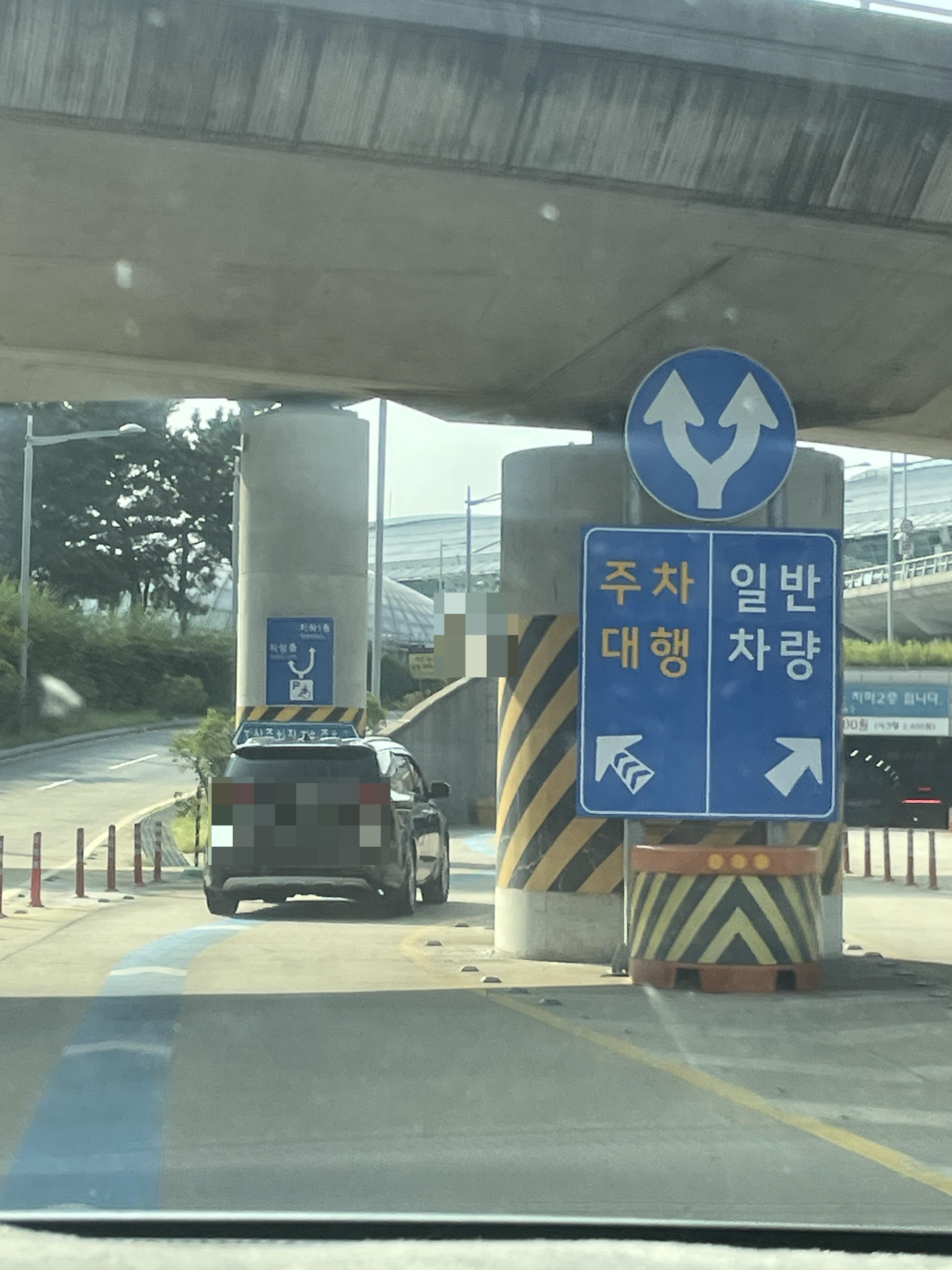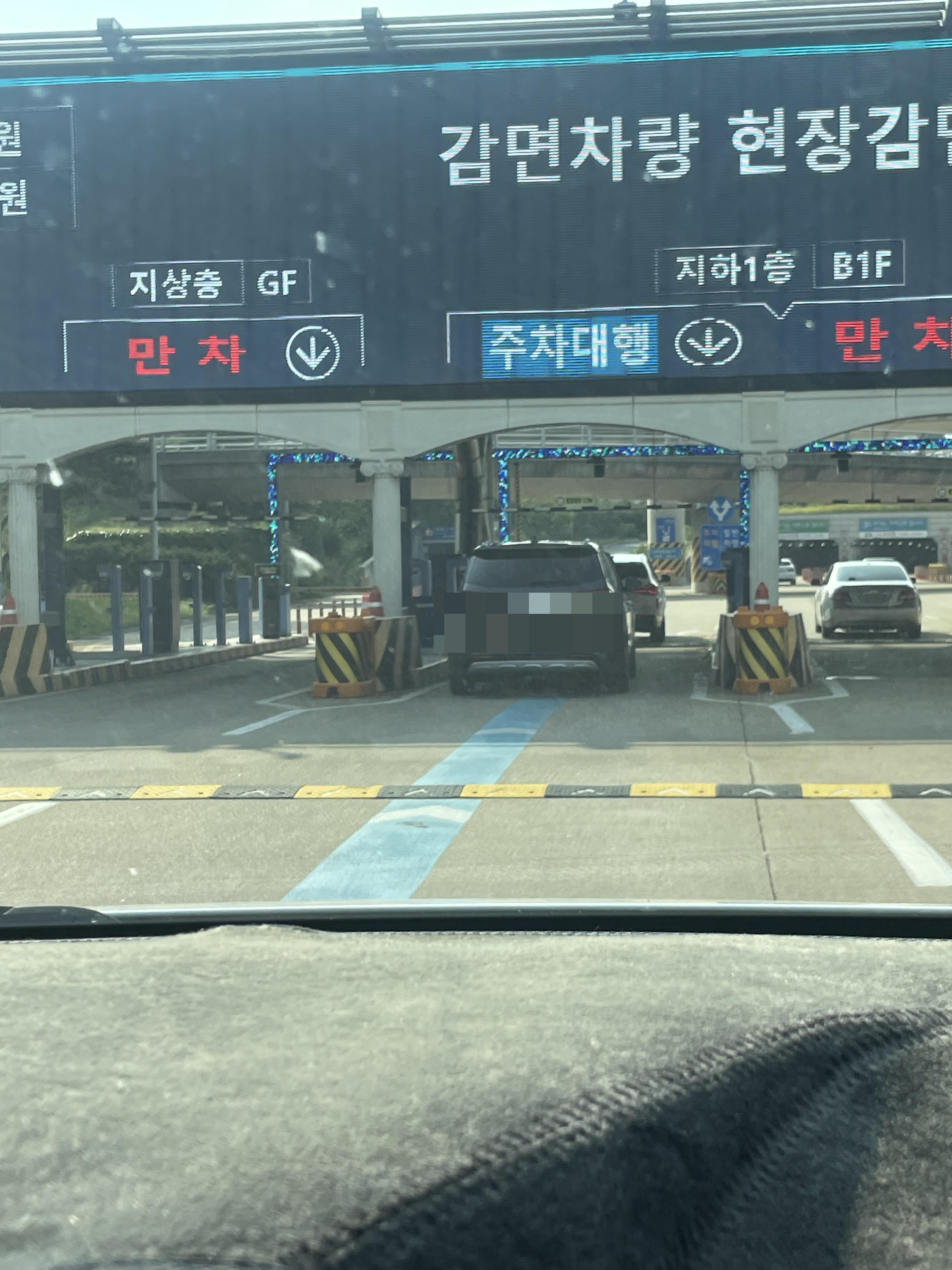 주차장 입구로 갈수록 파란색 선으로 주차대행이라고 아래 써있어서