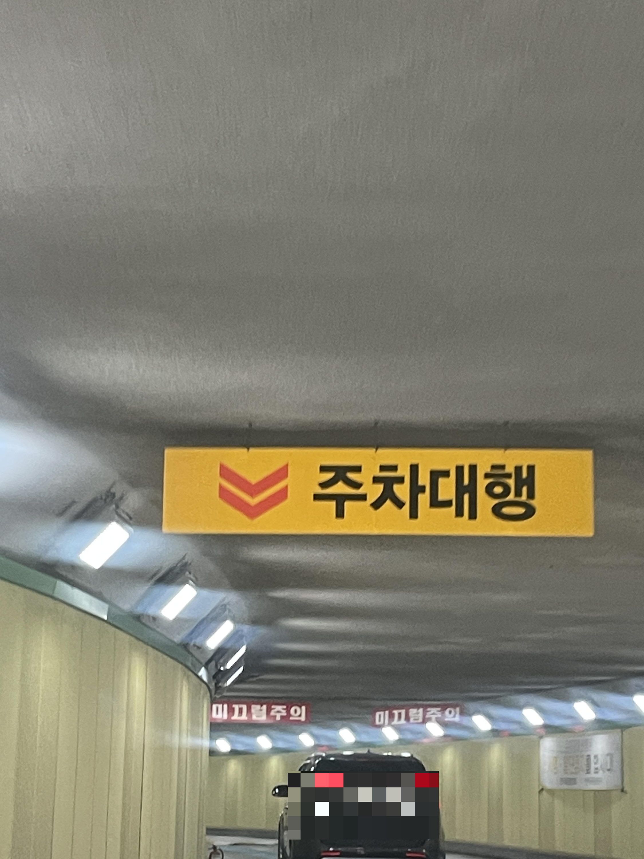 주차장 입구로 갈수록 파란색 선으로 주차대행이라고 아래 써있어서